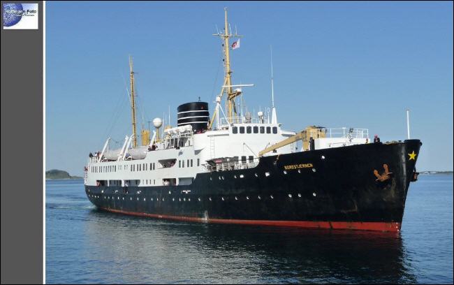 Die Nordstjernen,1956 gebaut und nach dem Polarstern benannt, der seit der Zeit der Wikinger die Schiffe nordwärts geleitet. Wir reisen von Berlevåg zum Nordkap. |