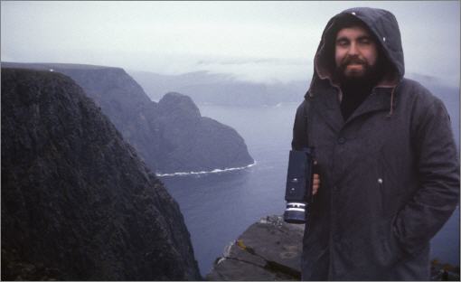 Wir sind am Nordkap. Genau um Mitternacht. Es ist noch hell, aber es ist windig und ziemlich kalt, es regnet und es ist nebelig. Es ist August.