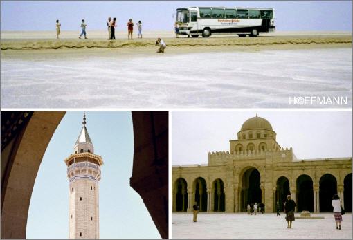 Reiseleitung Tunesien. Als erster ausländischer Reisebus querten wir auf einer Leser-Reise der Frankfurter-Nachrichten den tunesischen Großen Salzsee Chott el Djerid auf noch unbefestigter Piste. Im Reiseprogramm – die Moscheen von Monastir und Kairouan.