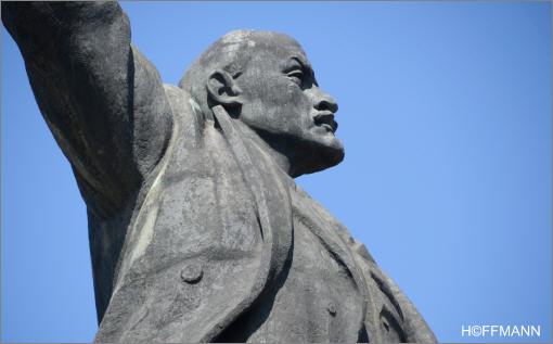 Auf tausenden Plätzen der Sowjetunion grüßen die Lenin-Monumente. Dieser hier begrüßt uns in Saporoshje.