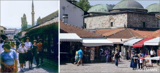 7 Jahre später, in den Jahren 1992 bis 1996, bleibt hier während des Bosnienkriegs kaum ein Stein auf dem anderen und etwa 11.000 Menschen finden hier den Tod.