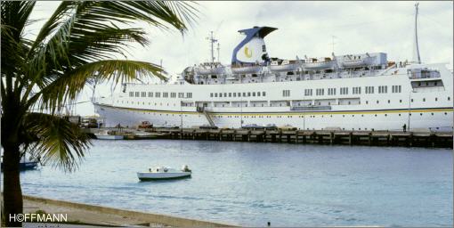 Wir begleiten eine Leser-Kreuzfahrt. Es geht mit dem kleinen, bereits damals ziemlich veralteten Kreuzfahrer MS Dolphin durch die Karibik: