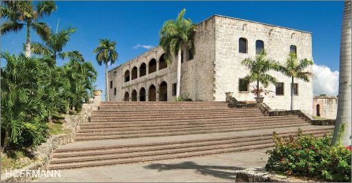 Dominikanischen Republik auf der Insel Haiti: In Santo Domingo besuchen wir den. Alcázar de Colón. In dem um 1512 errichteten Palast wohnte Diego, der Sohn von Christoph Kolumbus mit seiner Ehefrau María de Toledo, der Nichte des spanischen Königs.