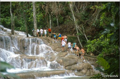 Wir klettern in den Dunn’s River Falls, der Touristenattraktion von Ocho Rios.