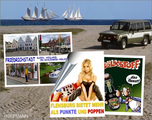 Unsere erste kleine Reise, nach dem „verunglücktem“ vergangenem Jahr, unternehmen wir im Frühsommer `88 mit unserem funkelnagelneuen Isuzu-Trooper-Geländewagen in Deutschlands Norden. U.a. Besuch von Flensburg und der Grachtenstadt Friedrichstadt.