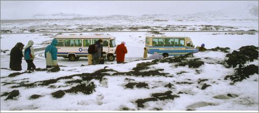 April 1989: Bitterkalter Frühling auf Island, der Insel aus Feuer und Eis mitten im Nordatlantik. Das Hochland ist noch tief verschneit.