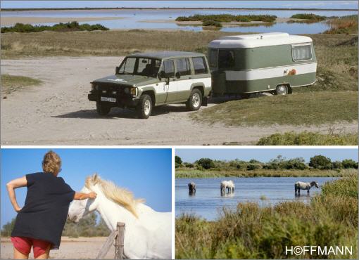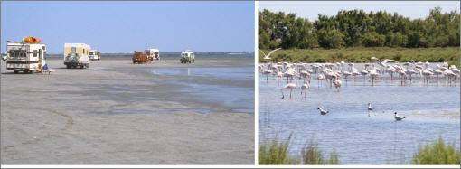 Wir entdecken die Camargue mit ihren flachen Stränden, Schwärmen von Flamingos und den weißen Camargue-Pferden.