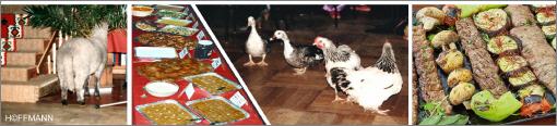 Zu den 60 illustren Gästen, alle in traditionellen Gewändern, gesellten sich 4 Hühner, 2 Enten, ein Schaf und ein Büffet aus 1001 Nacht.