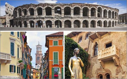 Vom Gardasee ist es nicht weit nach Verona. Hier besuchen wir mit unseren Gästen die Arena di Verona und in der hübschen Altstadt natürlich den berühmten Balkon von Romeo und Julia.