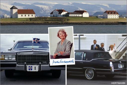 Zufällig treffen wir Vigdís Finnbogadóttir, die Premierministerin von Island, vor dem Höfðihúsið, dem Gästehaus der Regierung – ganz ohne Bodyguards.