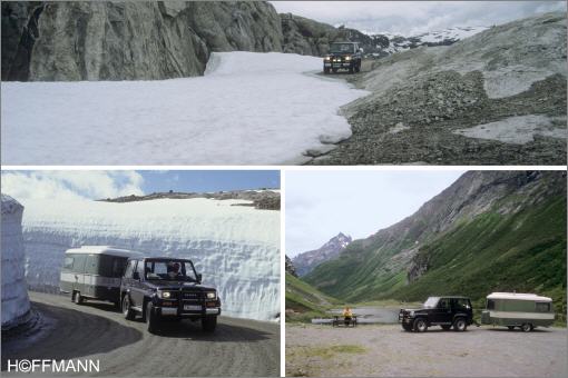Mit Toyota und Wohnwagen durch Norwegen. Selbst jetzt im Juli finden sich auf der Hardangervidda noch Schneereste.
