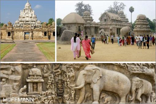 Kanchipuram, Stadt der tausend Tempel und die gut besuchten monolitischen Steintempel von Mahabalipuram.