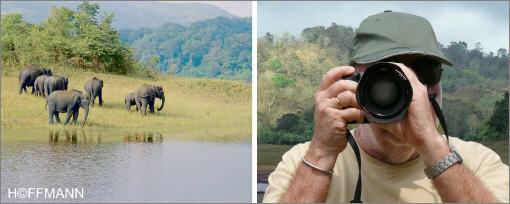 Fotoexpedition im Perijar-Tiger-Resort in den Westghates. Die Tiger haben keine Lust auf einen Fototermin mit mir, die wildlebenden Elefanten aber schon.