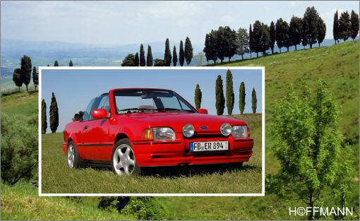 In die Toskana. Diesmal sind wir mit unserem knallroten Ford unterwegs. Meistens sogar ohne Dach.