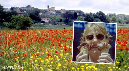 Gerdi erfreut sich nicht nur am blühenden toskanischen Frühling, sondern auch an einer doppelten Portion Gelati.