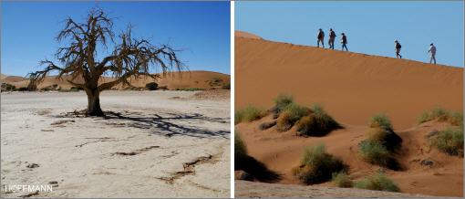 Das Sossusvlei ist eine von Sanddünen umschlossene Salz-Ton-Pfanne in der Namib, die sich nur in seltenen, guten Regenjahren füllt, wenn der Fluss Tsauchab ausnahmsweise überhaupt mal Wasser führt.