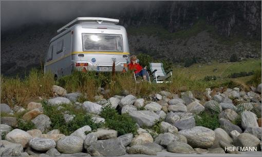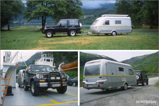 Im Juni 2002 sind wir mal wieder mit dem Wohnwagen-Gespann in Norwegen unterwegs. Der sonst ziemlich unverwüstliche Toyota hat allerdings technische Probleme mit der Kühlung, die aber letztendlich in der Toyota-Werkstatt in Gol behoben werden konnten.