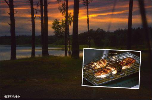 Romantische Sommerabende am mittelschwedischen Orsa-See. Chillen und Grillen – am liebsten frischen Lachs. Der leckere Rotwein dazu stammt von Aldi-Feinkost – Eigenimport aus deutschen Landen.