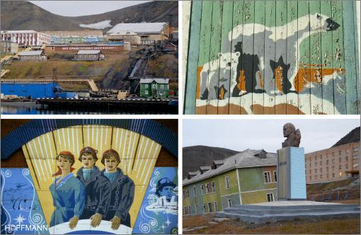 In Barentsburg, der russischen Polarstation und Bergarbeitersiedlung am Isfjord auf Spitzbergen, wärmen wir uns in der nüchternen, eiskalten Hotelbar erst mal mit einem „100 Gramm Wodka“ ein wenig auf. Genosse Lenin auf seinem Sockel ist Zeuge.