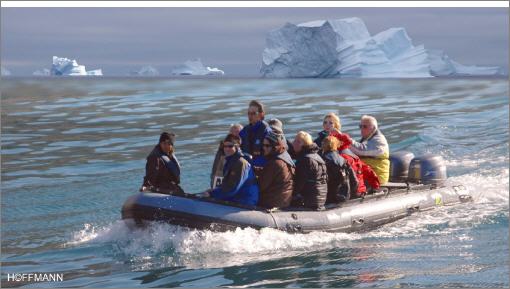 Des Öfteren beobachten wir auf unserer Reise Wale, die größten Säugetiere der Erde. Mit seetüchtigen Schlauchbooten erkunden wir täglich interessante Punkte der grönländischen Westküste.