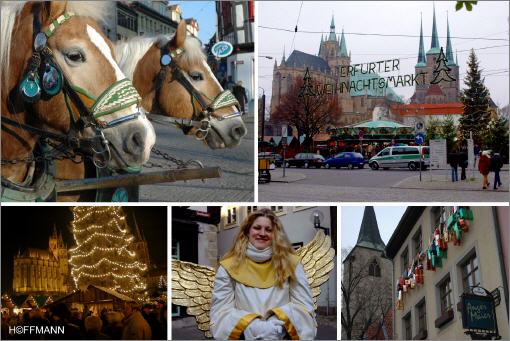 Thüringische Landeshauptstadt Erfurt im Dezember. Dom und Severi-Kirche bieten eine einmalige Kulisse zu einem der beliebtesten deutschen Weihnachtsmärkte.