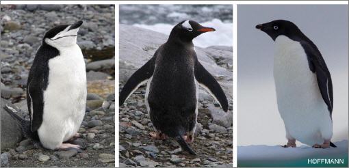 Wir beobachten Zügelpinguin, Eselspinguin und Adeliepinguin.