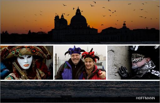 Carneval in Venedig. Geheimnisvolle Gestalten und Masken begegnen uns überall in der Lagunenstadt.