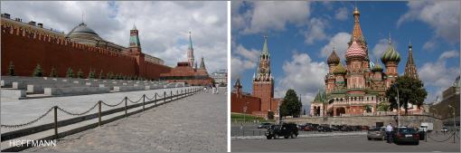 Stolz wie eh und je – der Moskauer Kreml, Roter Platz und Basilius-Kathedrale. Der Autoverkehr hat sich jedoch seit unseren letzten Besuchen in den 70er und 80er vervielfacht.