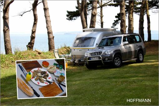 Überall in der Bretagne finden wir kleine, romantische Campingplätze und auf den Märkten frische Austern und andere Leckereien.