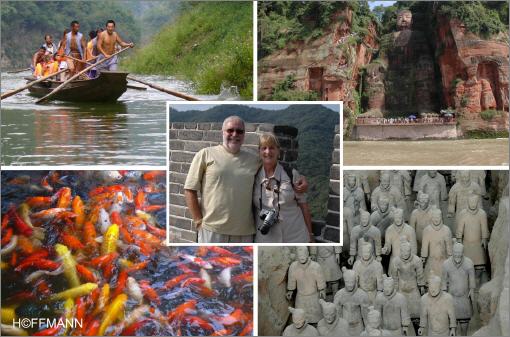 Unterwegs auf dem Jangtsekiang, auf dem Ming-Jiang-Fluss am Großen Buddha von Leshan, auf der Großen Mauer und bei der Ton-Armee von Xian.