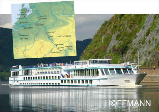 Sommerliche Rhein-Schifffahrt durchs Mittelrheintal weiter nach Antwerpen, Rotterdam, Amsterdam und Ijsselmeer.