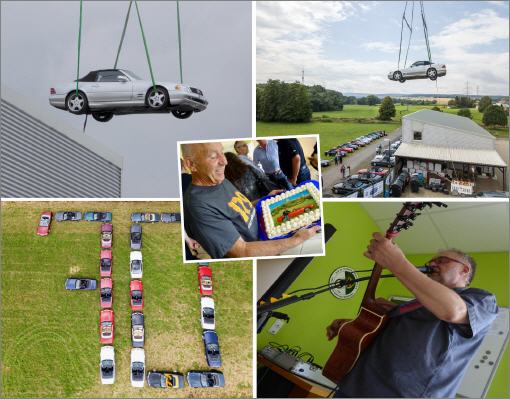 Unser SL-Freund Siggi hat sich dies als Überraschung für seine weit über 100 Geburtstagsgäste einfallen lassen. Wir bedanken uns alle dafür mit einer großen Jubiläumszahl und einer Mercedes-SL-Torte.
