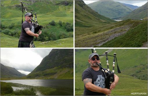 Tour durch die schottischen Highlands. Piper im Glancoe-Valley