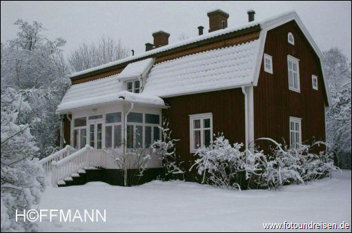Idylle pur! Rote Holzhäuser im Schnee. Das ist Schweden im Winter!